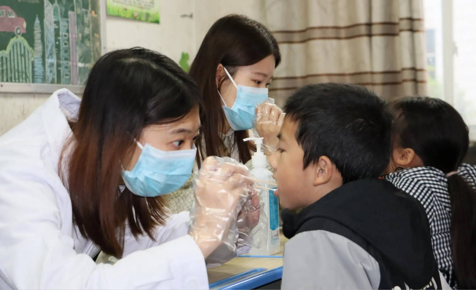 11 月 7 日上午,青年党员和团员代表组成义诊团队走进思德小学。课堂上,来自四川口腔医院的青年医护队伍为学生们讲解了牙齿的基本结构、正确刷牙方法等知识,在随后的现场检查中,医护团队为每一名学生进行了免费口腔检查,大多数学生的口腔状况良好。思德小学老师表示,自从去年华西牙科义诊团队到思德镇宣传口腔保健知识之后,学校就加大了对口腔健康的宣传,在老师和家长的帮助下,不少孩子已经养成了良好的口腔保健意识,爱牙护牙的种子已经在孩子们心中萌芽生长。