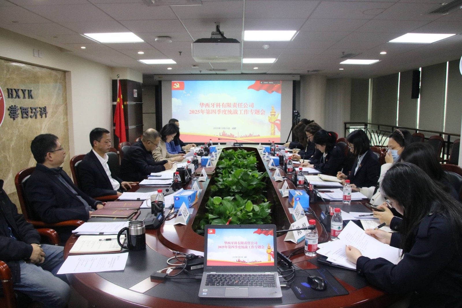 12 月 23 日下午,华西牙科党委召开 2025 年第四季度统一战线工作专题会。华西牙科党委书记、董事长、总经理刘凌云主持会议并讲话。会议传达学习了习近平总书记在党外人士座谈会上的讲话精神,总结了华西牙科 2025 年统战工作,研究部署了 2026 年相关工作。