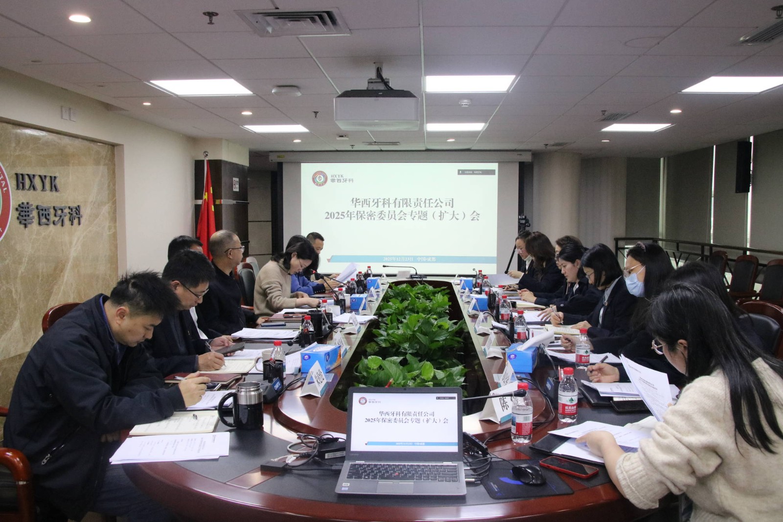 12 月 23 日,华西牙科召开 2025 年保密委员会专题(扩大)会。华西牙科党委书记、董事长、总经理刘凌云出席会议并讲话,党委副书记、工会主席金晶主持会议。