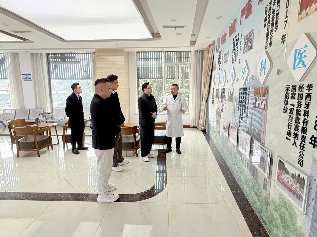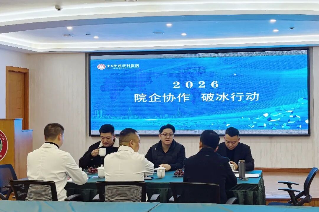 1月22日,多家合作企业负责人到重庆华西牙科医院参观交流,围绕深化院企协作、拓展口腔健康公益服务等内容进行座谈。重庆华西牙科医院院长陆勇军陪同参观并主持座谈。