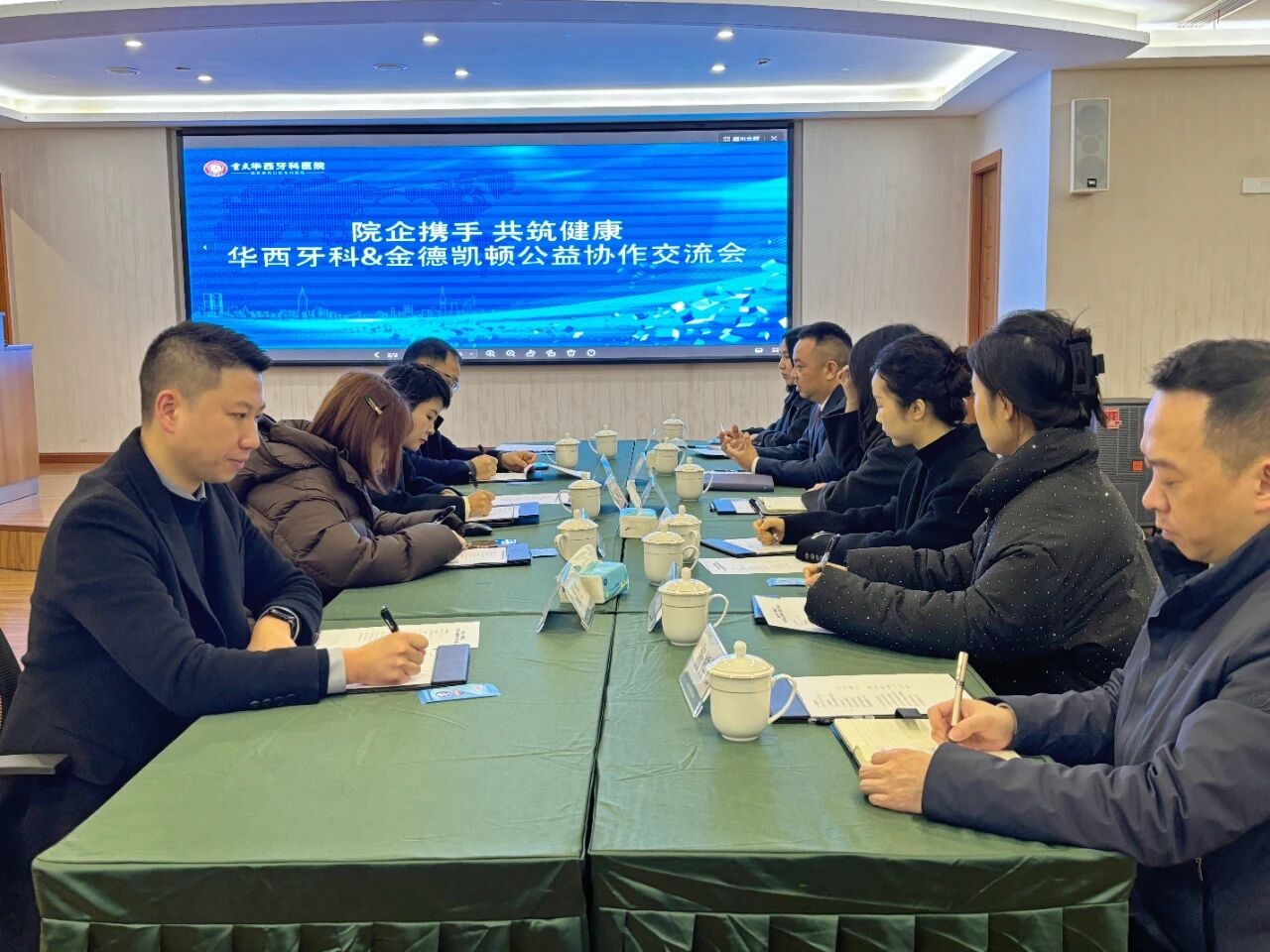 交流会后,双方共同走进金德凯顿幼儿园调研,实地了解儿童口腔健康教育现状及实际需求,并就未来公益合作的方向和内容进行进一步沟通。此次交流为双方在口腔健康公益科普领域深化合作奠定了良好基础。下一步,重庆华西牙科医院将持续发挥专业优势,加强与公益机构协同联动,探索多元化健康科普路径,助力儿童及家庭口腔健康水平稳步提升。重庆华西牙科医院相关部门负责人及医生代表参加此次交流会。
