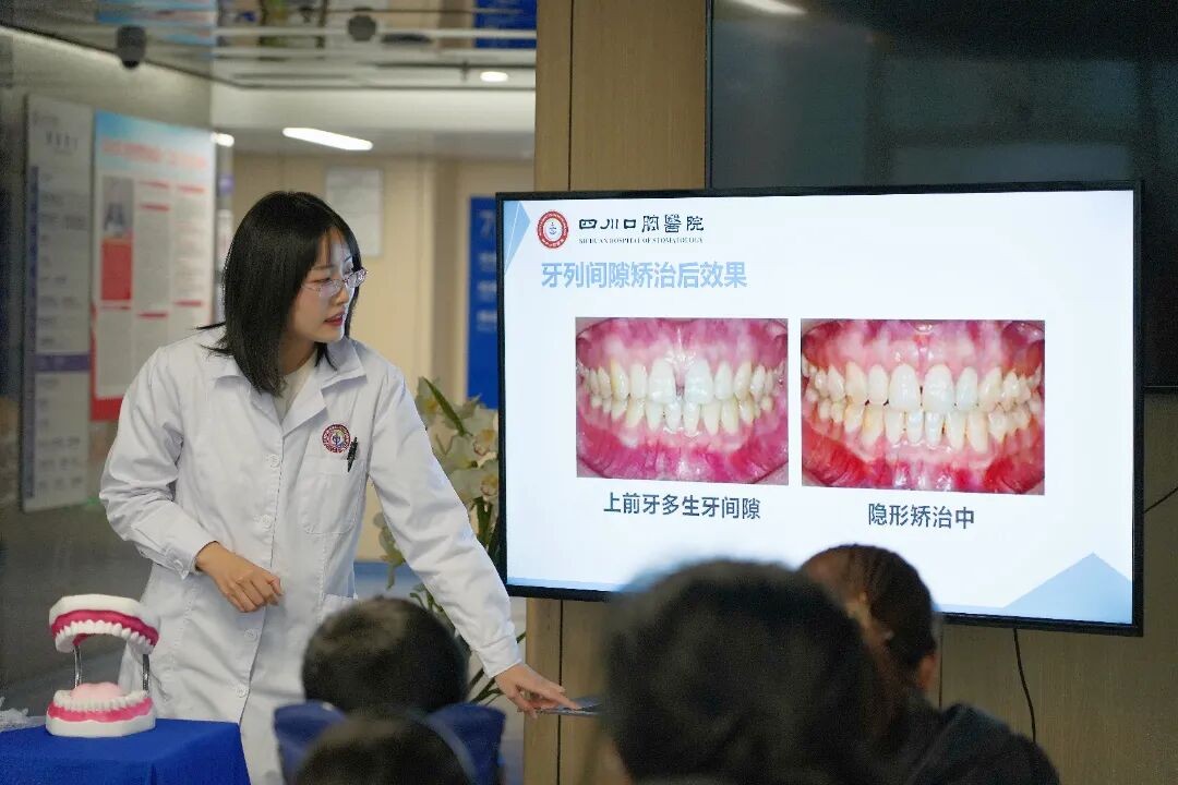 四川口腔医院正畸科开展专场宣教活动。医护团队对正畸治疗、矫治期护理、儿童早期矫治等内容进行科普,通过图文讲解、一对一答疑、知识抢答、展板打卡等形式提高患者参与度。活动结束后,医护团队为儿童赠送了专属口腔礼品,为全体患者发放口腔健康大礼包,以专业与温度提升大众口腔保健能力。